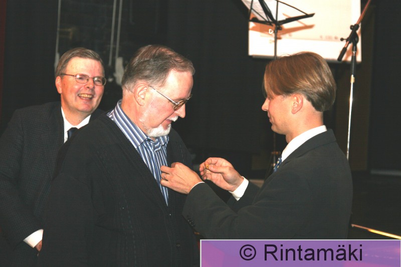 Tampere Helin saa jonkun ansiomerkin kai Lehtiniemi oikealla.