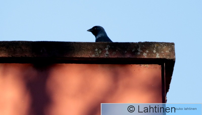 Kaarikatu Mänttä-Vilppula Ulkoillessa kuvattu talon piipulla istumassa