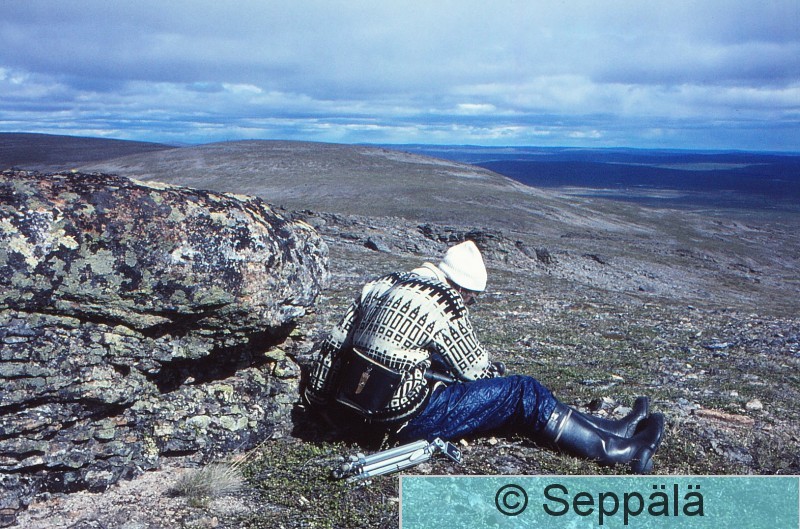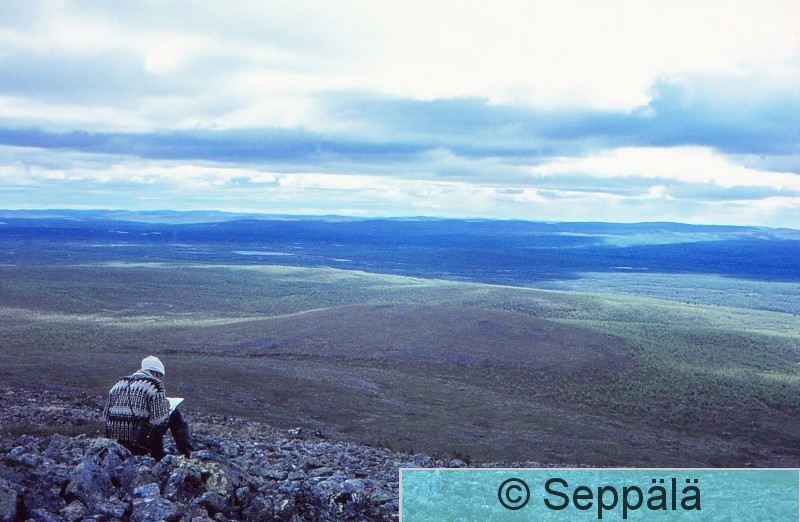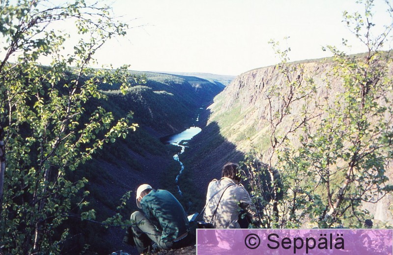 Utsjoki Kevo Kevon kanjonilla heinäkuussa 1975 vasemmalla Teppo Rantanen, oikealla Lasse Kosonen. Vaelsimme kolmistaan luonnonpuiston halki. Paras havainto oli kanjonissa nuori tunturihaukka, joka illalla paneutui nukkumaan jyrkänteellä olleeseen pesään.