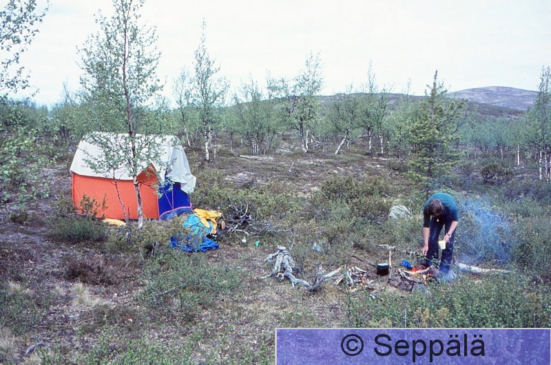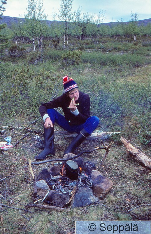 Utsjoki Ailigas Leirimme Ailigaksen tyvellä heinäkuussa 1975. Kuvassa Teppo Rantanen.