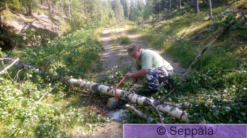 Pälkäne Laipanmaa Kaatunut puu voi katkaista linturetken, paitsi jos on saha mukana.