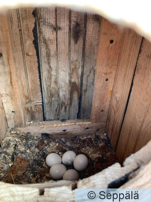 Kangasala Kuhmalahti Lehtopöllön pesä telkänpöntössä. Kuva Pekka Alanko.