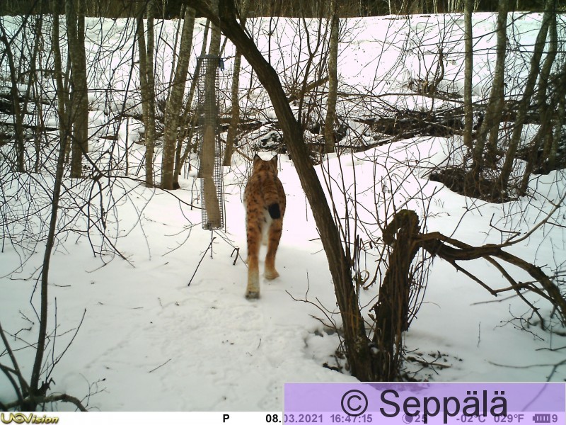 Kangasala Heponiemi Valkoselkätikkaruokinnalle tuli myös ilves.