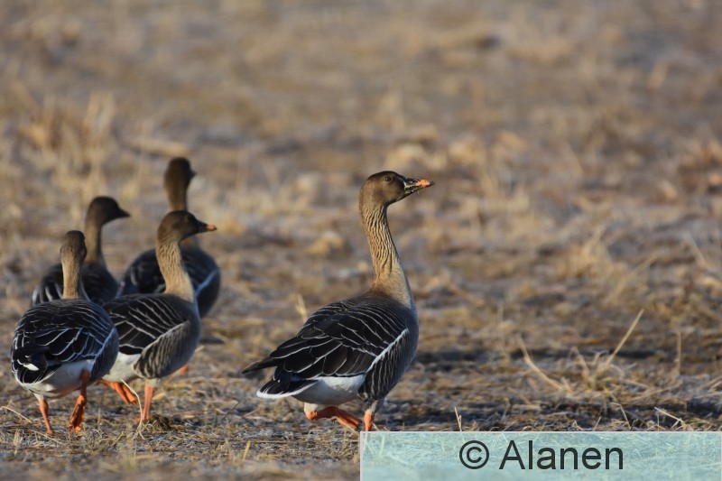 Tampere Teisko Velaatta Metsähanhien ja tundrahanhen sekaparvi keväisellä pellolla