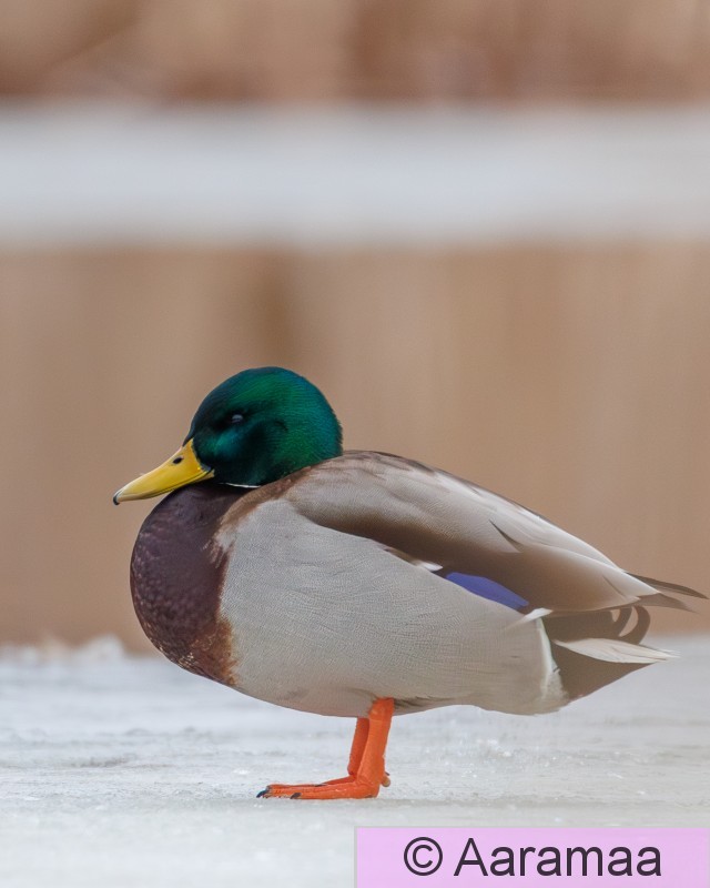 Tampere Iidesjärvi Sinisorsanaaras lepäilemässä sulan reunalla Iidesjärven länsipäässä.