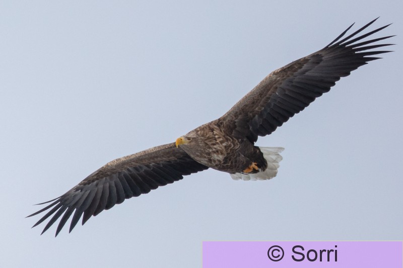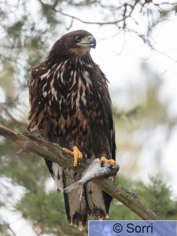 Sääksmäki Merikotka syömassä verkkokalastajien jättämiä kaloja.