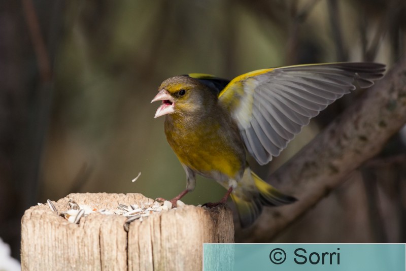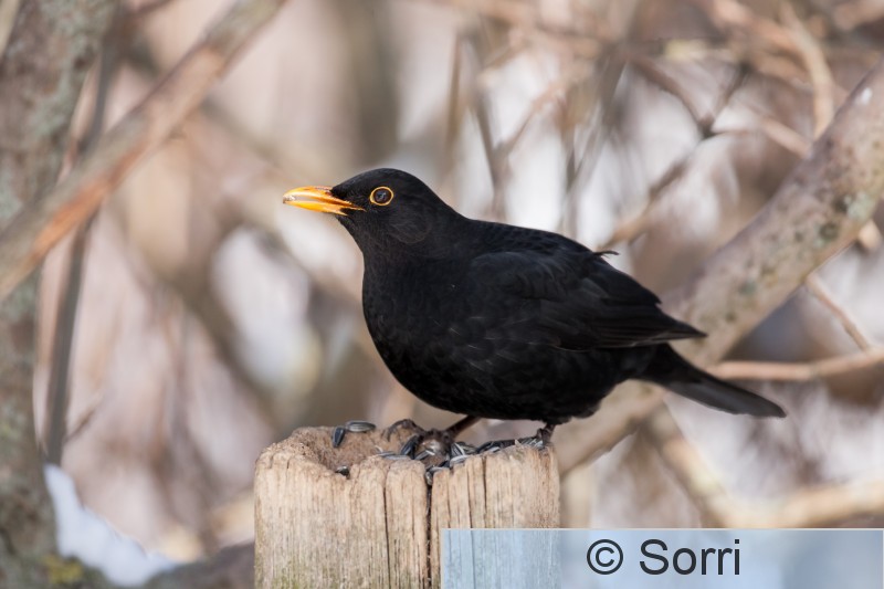 Pori Kaarluoto Viiksitimali syömässä talvipäivänä