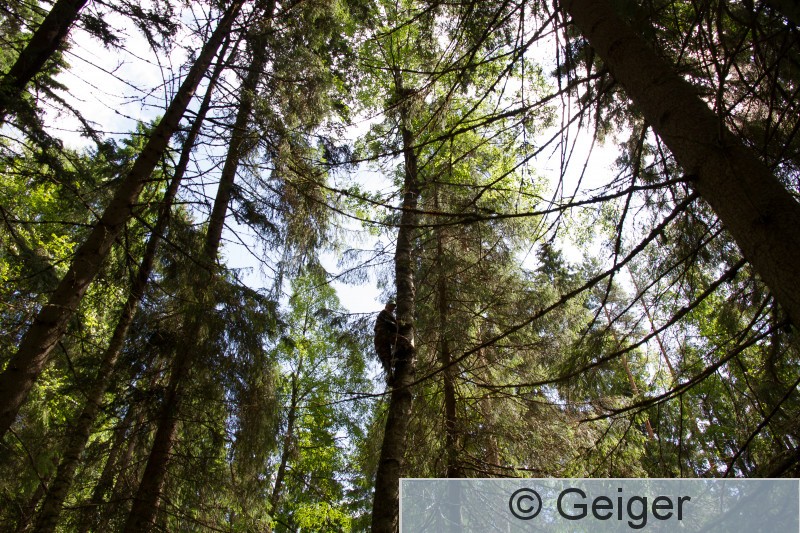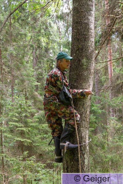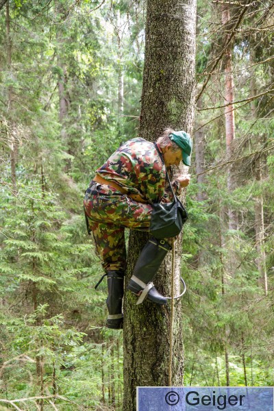 Kangasala Rengastaja Jyrki Savolainen kiipeämässä Pirkanmaan ensimmäiselle haarahaukan pesälle.