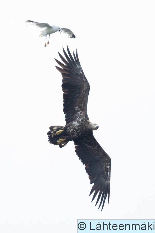 Sastamala Mouhijärvi Salmi Kalalokki härnää nuorta merikotkaa