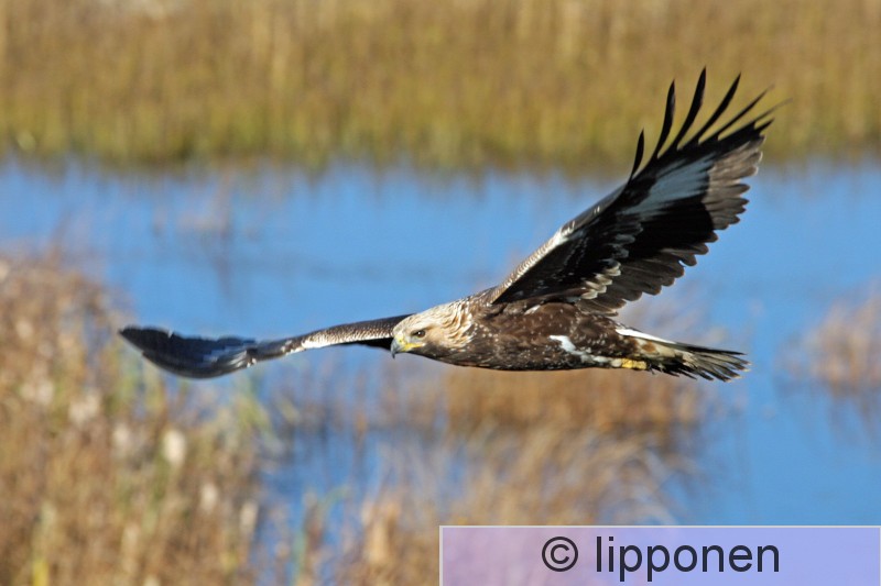 puurijärvi kärjenkallio Nuori maakotka laskeutui lintutornin katolle, josta ampui suon pintaan ruskosuohaukan kimppuun. Paluumatkalla tuli suoraan kameraa kohti.