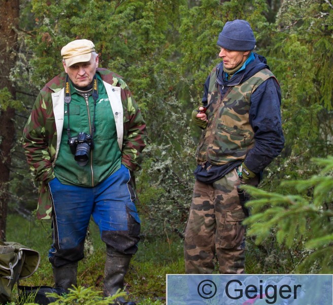 Kangasala Heponiemi Sääksisäätiön toiminnanjohtaja Juhani Koivu ja rengastaja Jyrki Savolainen.