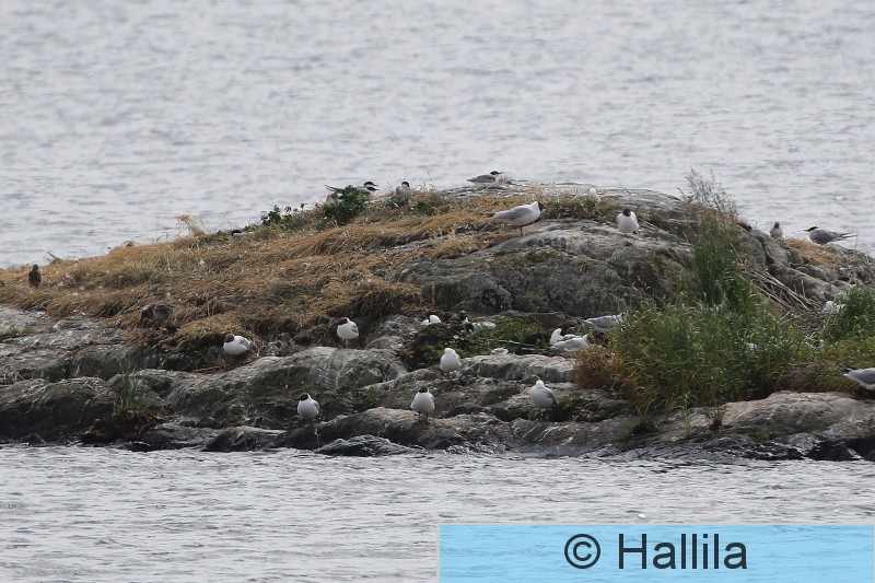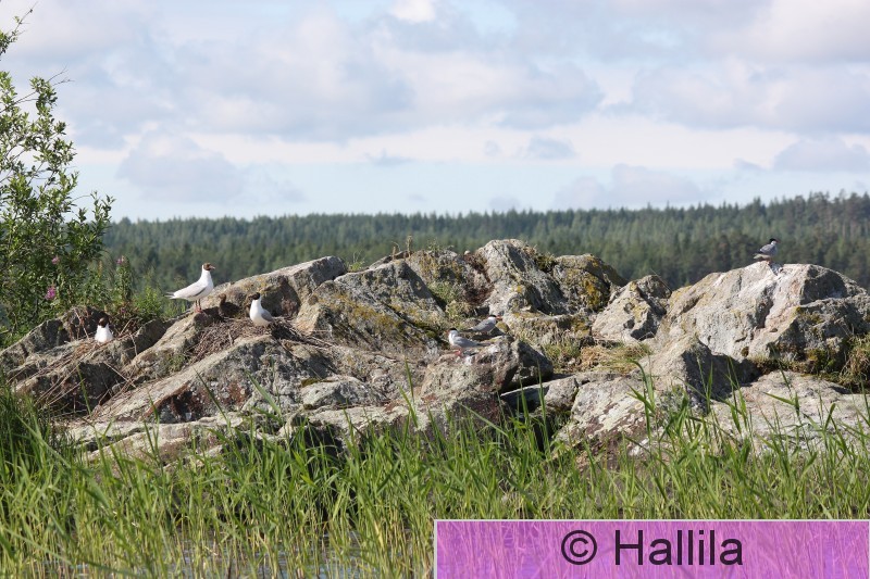 Ruovesi, Visuvesi, Aittossaresta S Osa Visuveden Aittosaaren eteläpuoliselta pesimäluodolta. Ko. vuonna luodolla pesi yli 40 paria naurulokkeja ja noin 10 paria kalatiiroja. Pesinnät onnistuivat hyvin - kuvassa näkyy jo melko kookkaita poikasia. Kalatiirat pesivät korkeimmalla kohdalla.