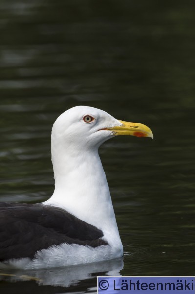 4020 Selkälokki, Larus fuscus, lähikuva, pää, pystykuva