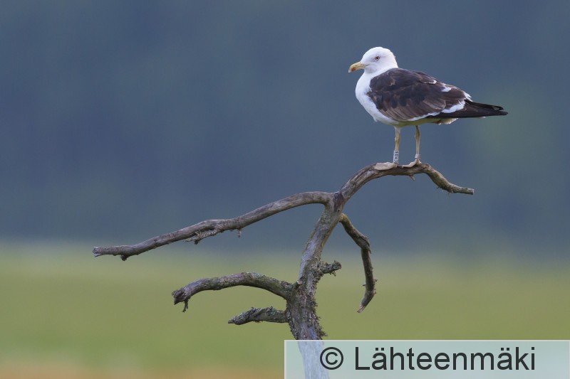 6927 Selkälokki, Larus fuscus, lukurengas, kelopuu, vaakakuva