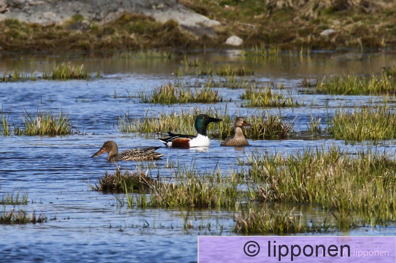 Espoo Finnoo Lapasorsapari pyörittää rantavettä, jotta pieneliöstö nousee pintaan.