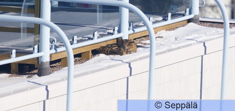 Espoo Huuhkaja hautoo Espoon keskuksessa virastotalon katolla. Kuvaaja Antti Karppi.