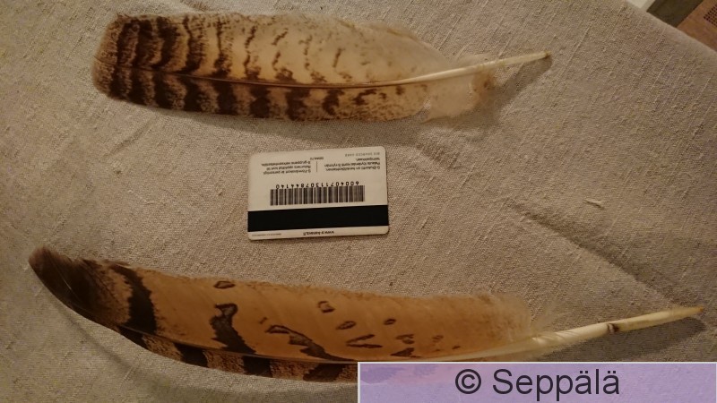 Nurmijärvi Perttula Äijänkallio Huuhkajan sulkia, jotka olen löytänyt pesäpaikoilta joskus 1990-luvulla.