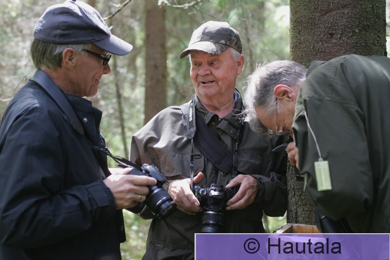 Orivesi Rengastajat pöntön ääressä ( Jaakko Syrjänen, Väinö Kaplas ja kuvaaja.