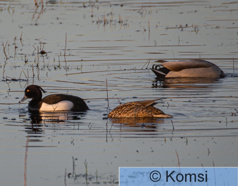 Kangasala Herttuala Pellolla olevassa tulvalammikossa sinisorsia ja tukkasotka