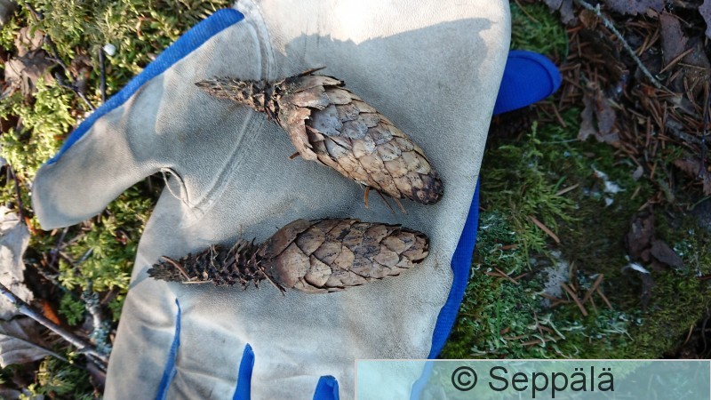 Kangasala Vesijärvi Vertailun vuoksi oravan syömiä käpyjä.