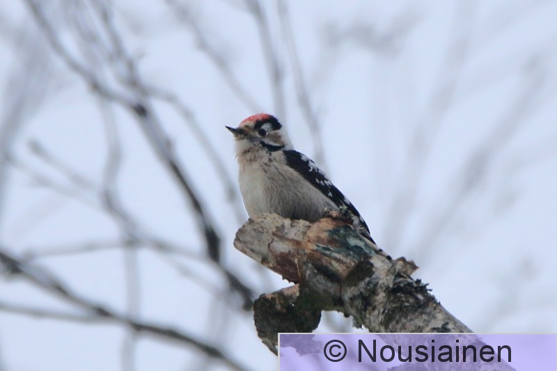 Tampere Iidesjärvi Pikkutikkakoiras naputtelee puuta tikkametsän lähistöllä.