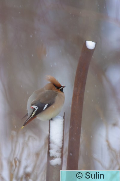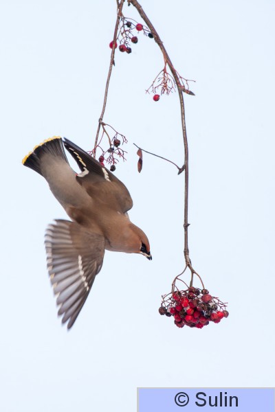 Ruovesi, Sointulantie Tilhet lensivät parvessa toistuvasti talojen lähellä oleviin pihlajiin ja jälleen kauemmaksi. Pääsin siirtymään parempaan kuvauspaikkaan pikkuhiljaa.