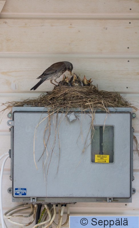 Ylöjärvi Kuru Räkättirastaan pesä mökin sähkökaapin päällä.