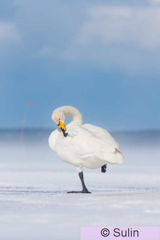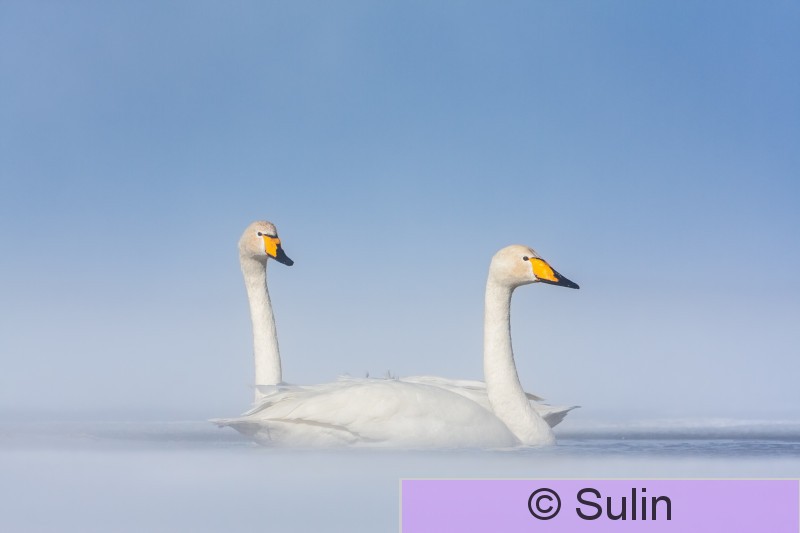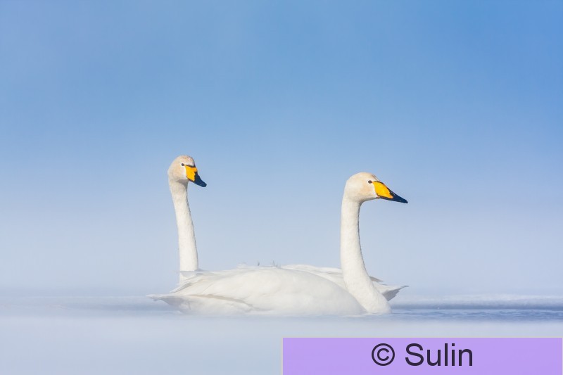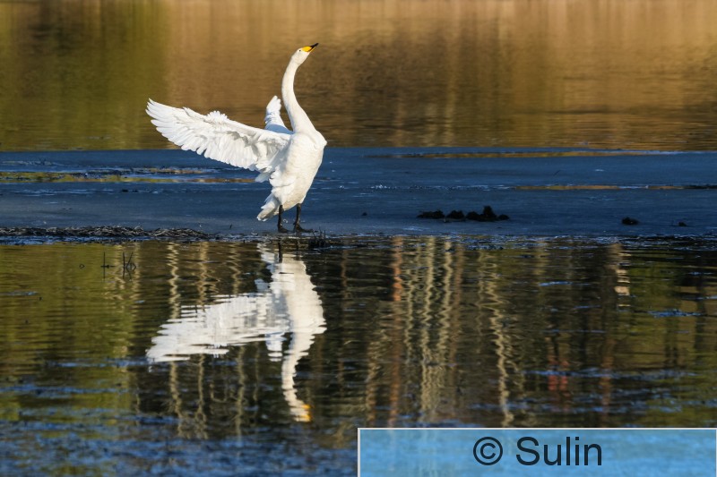 16203 järvenjää jää järvi kevättalvi kevätmuutto lumi pariutunut joutsenpari