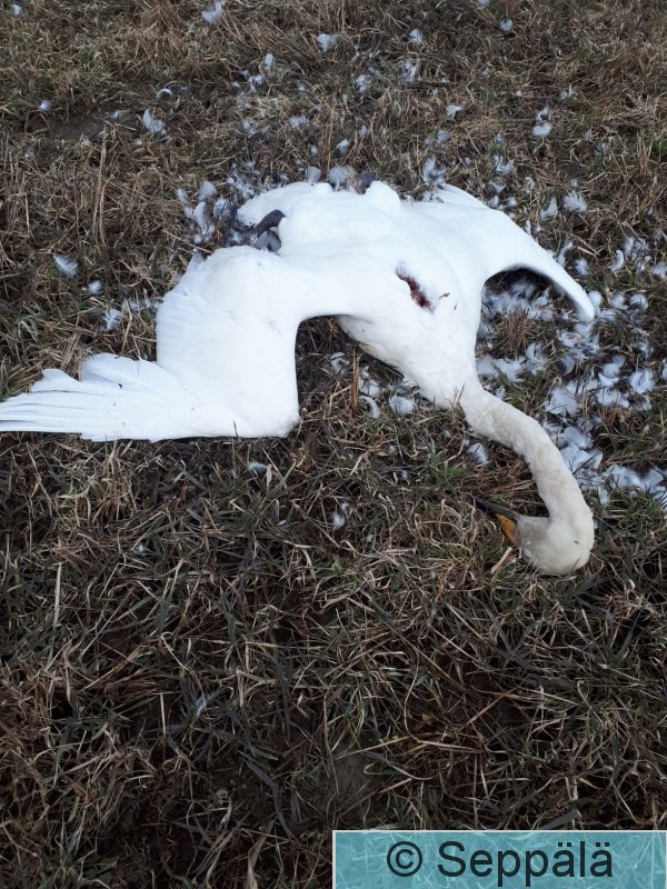 Kangasala Saarikylät Riistakamera oli kiinnitetty metallisen kolmijalan huipulle rantaveteen, ja se herätti joutsenen kiinnostuksen.