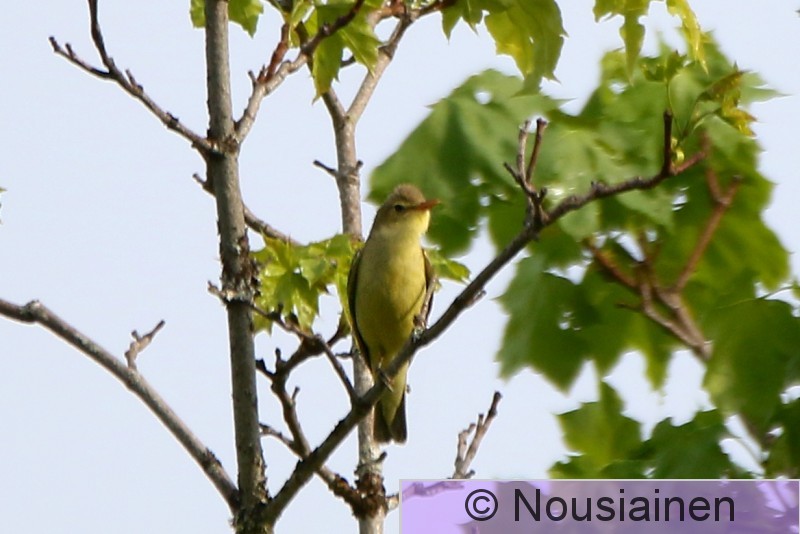Raasepori Rågö Kultarinnan juuri pesästä lähtenyt poikanen kuusen sisällä.