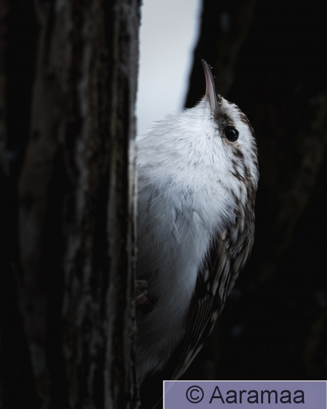 17216 puukiipijä rungolla tumma lähikuva