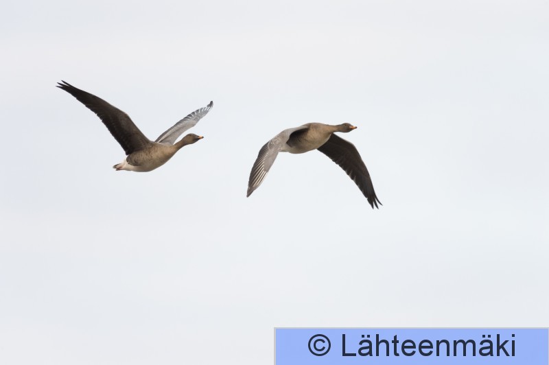 Kokemäki Puurijärvi Kaksi metsähanhea lennossa.