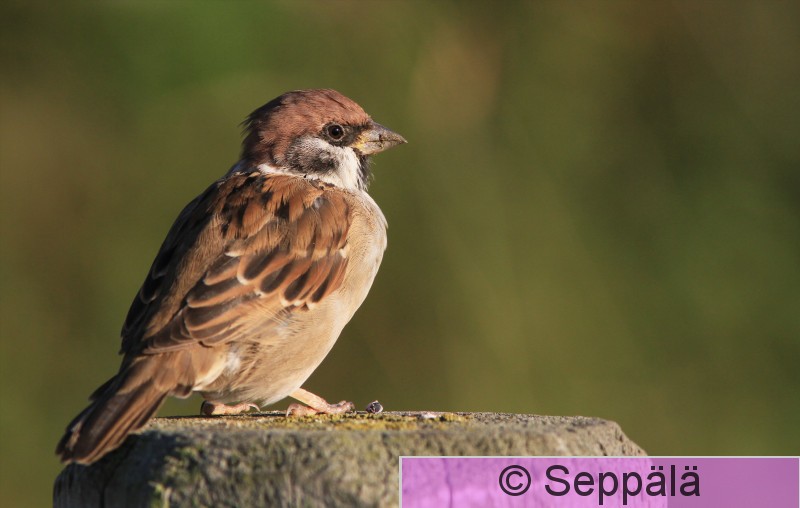 Sipilä Vilppula Pihapöntöstä alkoi särinää ja huomasimme vaimon kanssa pikkuvarpusen käyvän siellä toistuvasti. Luulin pesinnän epäonnistuneen koska aiemmin keväällä linnut olivat pöntön luona, mutta nyt taas on elämää. Pönttö on tavallinen tiaisten ja kirjosieppojen käyttämä rakenteeltaan.