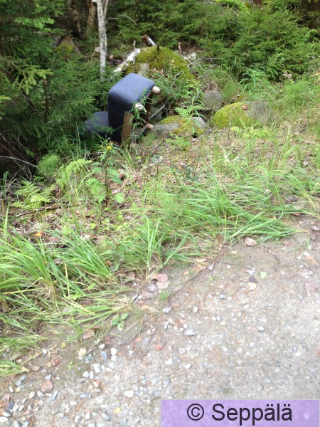 Kangasala Pelisalmi Vanha nojatuoli heitetty metsäautotien ojaan.