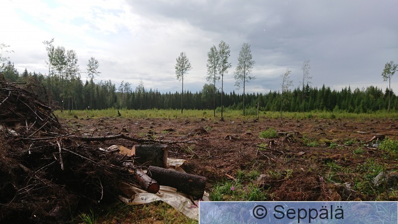 Pälkäne Kurkijoki Maapohjaa ei ole aurattu ja oksat on kerätty energiapuuksi.