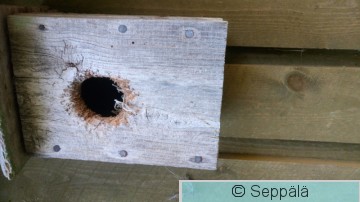 Kangasala Saarikylät Orava on nakertanut lentoaukon riittävän suureksi päästäkseen sisään.