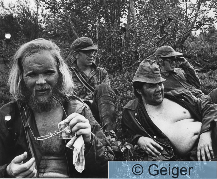 Kuru Seitseminen Jaalan Kämppä Huom: kuvaaja Jyrki Savolainen, julkaisulupa on. PVM ei tarkka: 60/1974Kuvassa TaLy lintuharrastajia Seitsemisen Jaalan kämpässä. Vas.: ?, Risto Salovaara, Mikko Jokinen, ?, Martti Lagerström.