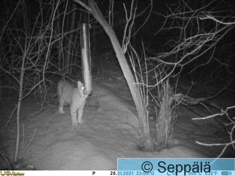Kangasala Heponiemi Valkoselkätikkaruokinnalle tuli myös ilves.