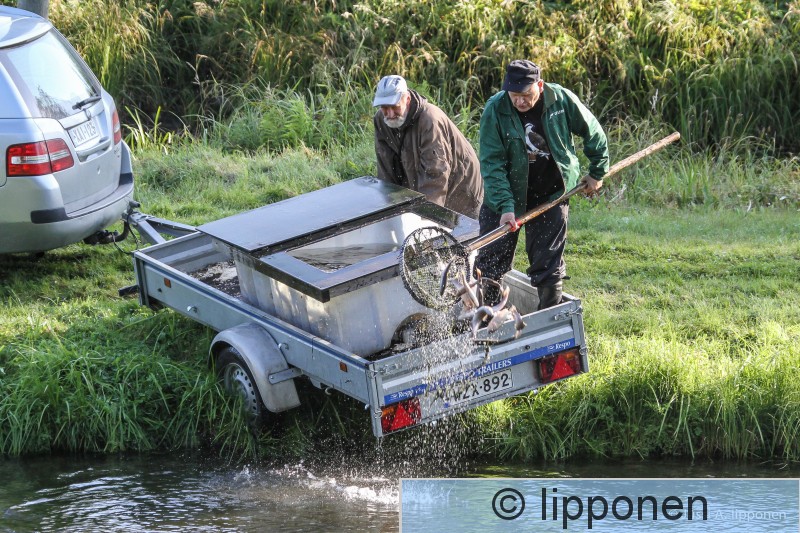 Sarsa Kangasala Saaksikeskuksen tj Juhani Koivu lisaa saaliskaloja.