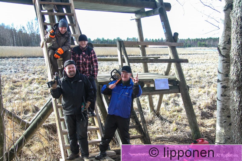 Valkeakoski Saarioisjärvi Lapinnokan talkoot, pj Olli Haukkovaara tikkailla ylinna.
