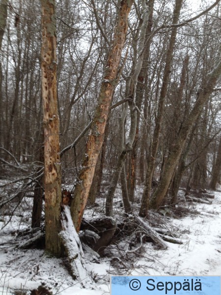 Pälkäne Valkoselkätikan ruokailumetsä Pälkäneellä.