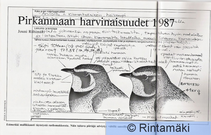 Nokia Lintuviestin harvinaisuuskatsauksen esimerkki erinomaisesta harvinaisuuslomakkeesta. Havaitsija ja lomakkeen tekijä Pekka Suhonen.