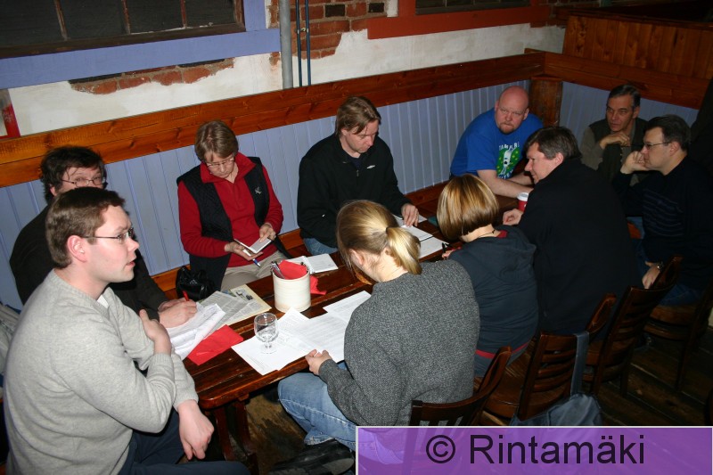 Tampere Plevna Edestä vasemmalta rahastonhoitaja Jyrki Lehtiniemi, Lasse Kosonen, Helena Leväsluoto (sihteeri?), pj. Petri Seppälä, Markku Rantala, Olavi Kalkko, Pentti Perttula, Risto Taskinen, Sanna Junttanen ja Peter Uppstu. LK ja OK eivät hallituksessa eikä kuvaaja PR.