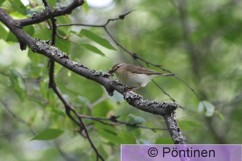Kaukajärvi, Muinaishaudankadun lähellä, Tampere Pajulintu vie ruokaa poikasilleen. Sillä oli pesä piilossa tiheässä pensaikossa.