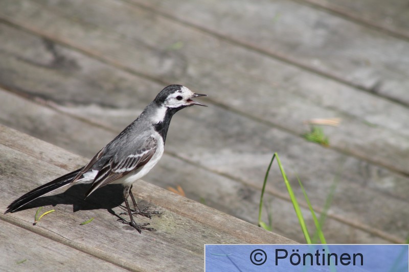 Virrat Västäräkki otti aurinkoa laiturilla. Välillä se viserteli ja suki sulkiaan.