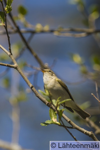 Valkeakoski Jutikkala Viitasirkkalintu laulaa vattupuskassa.