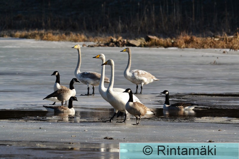Pilylle kanadanhanhia ja joutsenia Sarkkilanjärvellä.JPG