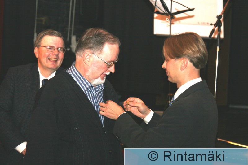 Tampere Helin saa jonkun ansiomerkin kai Lehtiniemi oikealla.