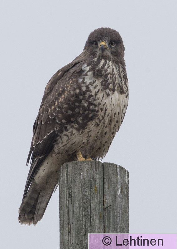 Hämeenkyrö, Haukijärvi. Nuori hiirihaukka talvella Hämeenkyrössä. Peloton kuin mikä.
