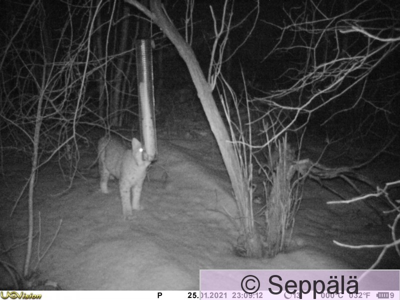 Kangasala Heponiemi Valkoselkätikkaruokinnalle tuli myös ilves.
